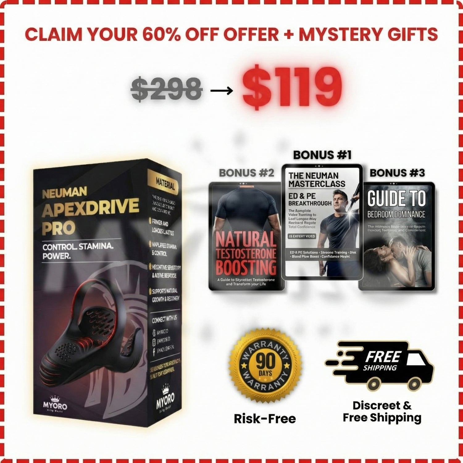If you use the Neuman™ for 90 days and don't notice an improvement in your stamina, energy levels, confidence, or overall performance, just drop us an email at us an email at info@myoro.co, and we'll refund your purchase with no questions asked!