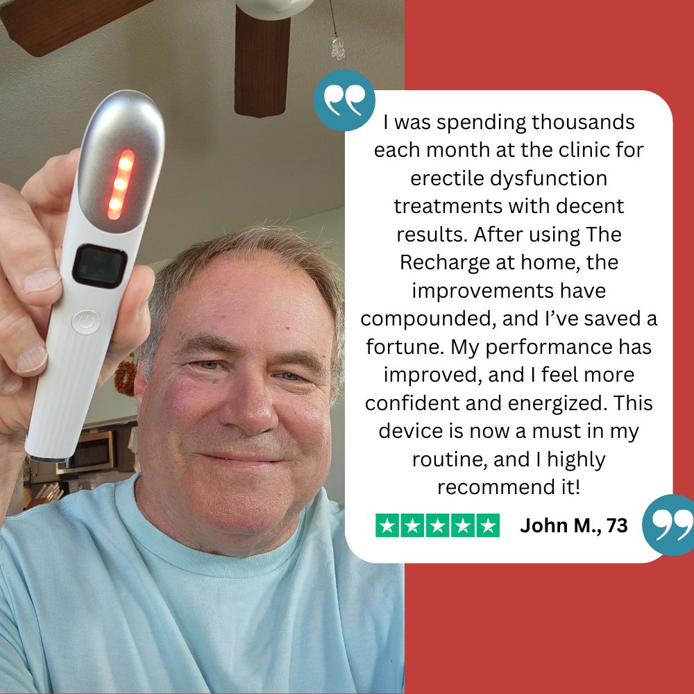 "At 58, I figured this was life now. After 5 weeks with Recharge, firmer erections, way better sensation. I'm not 25 again. But I'm back in the game. That matters."