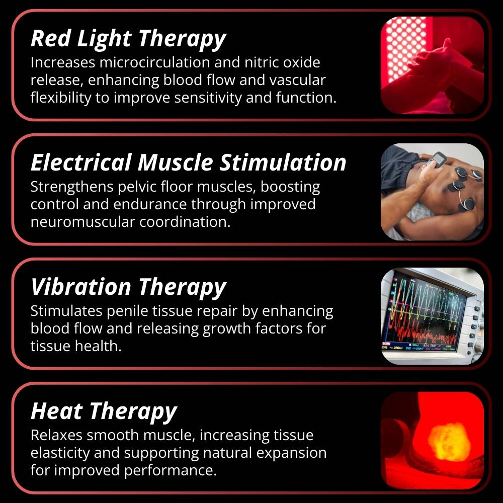 → Red Light → ATP Activation → Cells wake up → ED, PE, and Size all improve. One mechanism. Three problems solved.