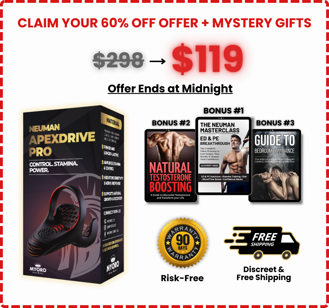 Neuman™ ApexDrive Pro is delivered with the highest level of care, ensuring your order reaches you within 7–12 business days. All shipments are tracked and come in discreet, temperature-controlled packaging for privacy and optimal protection. We offer same-day processing on all weekday orders, ensuring the fastest possible delivery.